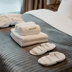 The rooms comprise a balcony and a dressing area complete with ironing facilities and air conditioning, as well as free wireless internet and a flat-screen TV with satellite channels. Furnished with a writing table, they also have soundproof windows. Bathrooms include a bidet, a spa bathtub, and a walk-in shower, along with such comforts as a hairdryer and bath sheets.